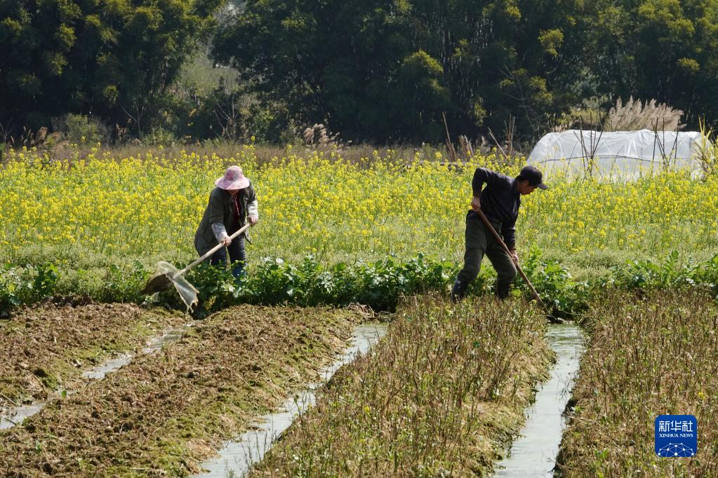2月24日,村民正在四川省射洪市沱牌鎮(zhèn)桑樹林村地里勞作。