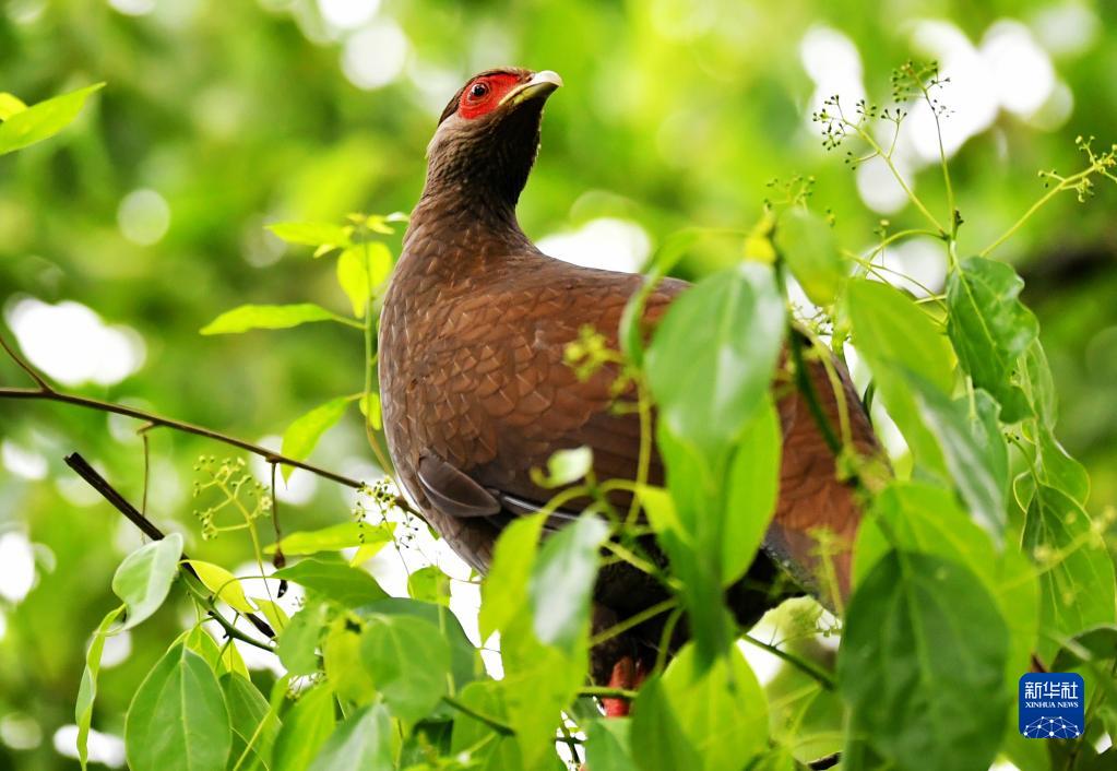 在福州金雞山公園,一只白鷴在樹叢中覓食(3月27日攝)。