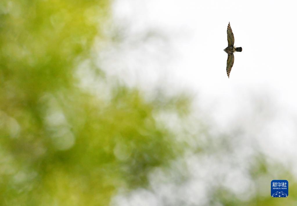 在福州金雞山公園,一只鳳頭鷹在天空盤旋(3月26日攝)。