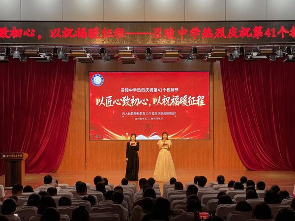 丹桂飄香滿校園,師恩如歌潤心田。2025年9月10日下午,召陵中學慶祝第41個教師節表彰大會在報告廳隆重舉行。全體師生齊聚一堂,以最真摯的敬意與熱烈的掌聲,致敬耕耘在教育一線的園丁,共同唱響“以教育家精神鑄魂強師,譜寫教育強國建設華章”的時代主旋律。